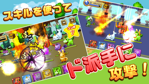 フリックでアニマルを移動させ、敵に近づけるとアニマルが攻撃!