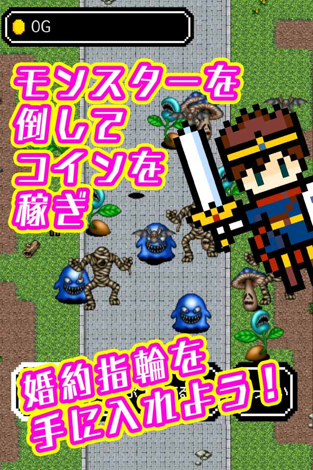 なぁれ!シリーズ第4弾!世界を救った勇者は今度は花嫁探しの旅に出ます。モンスターと戦いコインを稼ぎ、婚約指輪を女の子に装備させるために旅をする。コインを稼いで女の子たちに婚約指輪を装備させると花嫁になった女の子の姿とストーリーを見ることができます。総勢12人の魅力的な女の子たちをみんな嫁にしましょう!