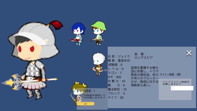 ドラッグ&ドロップとタッチだけで遊べるタワーディフェンスゲームです。敵ユニットの侵攻ルートに味方のユニットをドロップして敵の侵攻を防ぐゲームです。味方ユニットはドラッグ&ドロップするだけで動きますが、防御、スキル、退避、攻撃の4つの行動を指示することでより楽しく、ゲームをすることができます。重厚なシナリオもお楽しみ下さい。味方ユニットのレベルアップ、スキルなどの要素もあります。