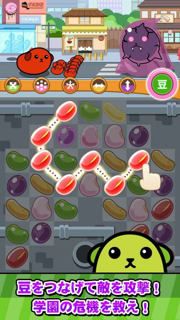 テレビCM好評放映中の豆しばの新シリーズ「豆しば学園」がパズルゲームになって登場!