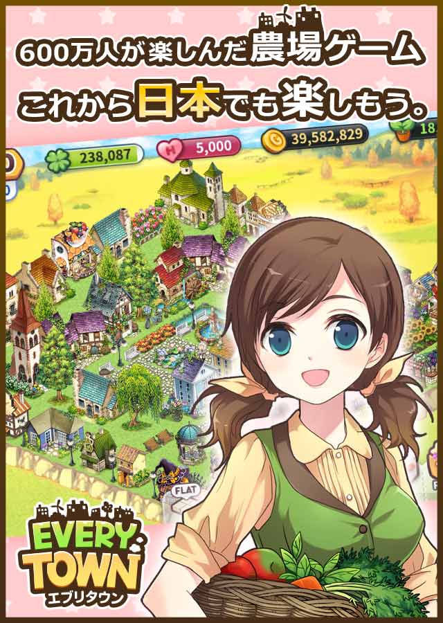 エブリタウンは自分だけのタウンを作り、農作物を耕作し、飾るモバイルゲームです。また、友達と交流を通じて一緒にタウンを成長させるソーシャルゲームでもあります。このゲームには感性的なストーリを基にした250種以上のクエストと、タウンの成長と共に現れるNPC(Non Player Character)との物語が含まれています。