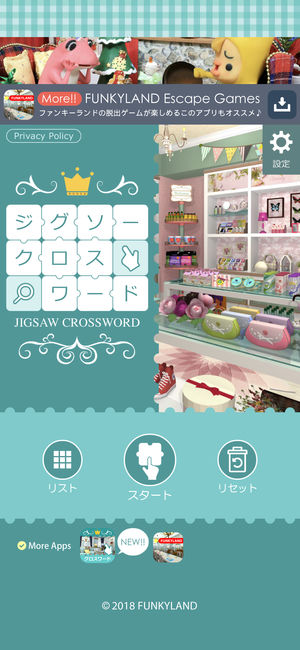 ファンキーランドの新しいゲームはクロスワードパズルゲーム。