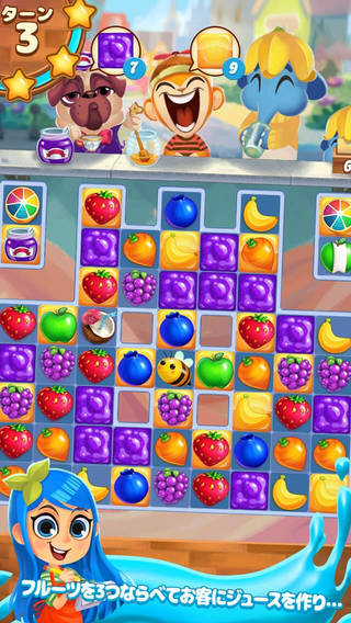 人気ゲーム『クッキージャム』の開発スタッフが手がける、ジュースをテーマにした、みずみずしい新作パズルゲーム。甘くておいしいチャレンジの数々を、ひとくち試してみませんか?