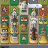 建物のブロックをタッチすると、ブロックが1箇所に集まり大きなビルにレベルアップ!
