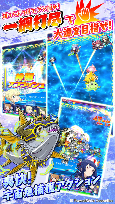 宇宙漁師候補生となった6名の少女たちと、周囲をとりまく多彩なキャラクターたちとの喜怒哀楽豊かなドラマが展開する「メインストーリー」と、少女たちにそれぞれに焦点を当て、その内面が描かれる「候補生ストーリー」。随所に選択肢が現れ、選択によってキャラクターたちの反応も大きく変化。