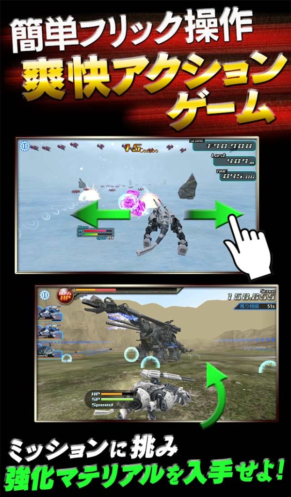 ◆3D爽快アクション!簡単フリック操作でゾイドを動かし、縦横無尽に敵を倒せ!