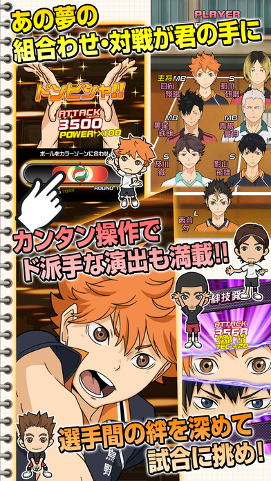 週刊少年ジャンプにて連載中、アニメも大好評の「ハイキュー!!」が育成バレーボールシミュレーションゲームでスマートフォンに初登場!