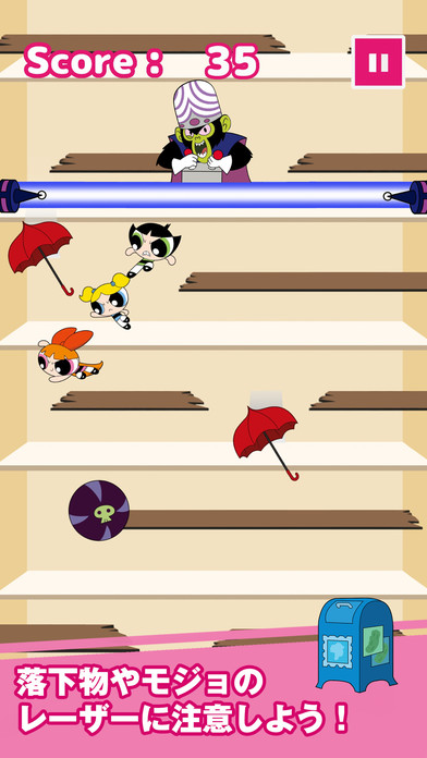 上から来るモジョのレーザーや障害物には気をつけて!