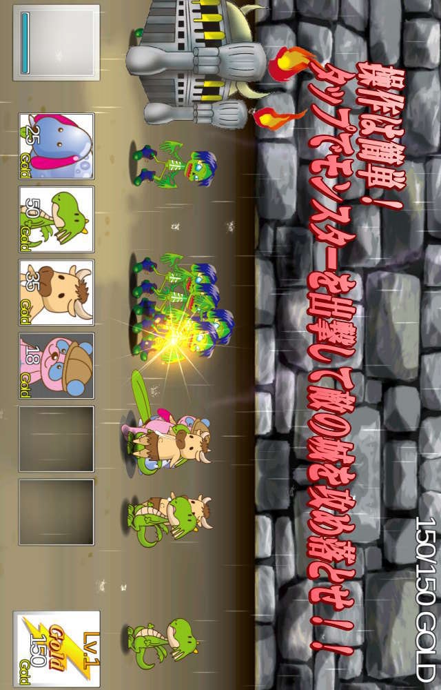 仲間キャラをタップして向かってくる敵を倒しながら、