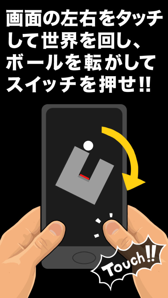 画面の左右をタッチして世界を回し、ボールを転がしてスイッチを押せ!!