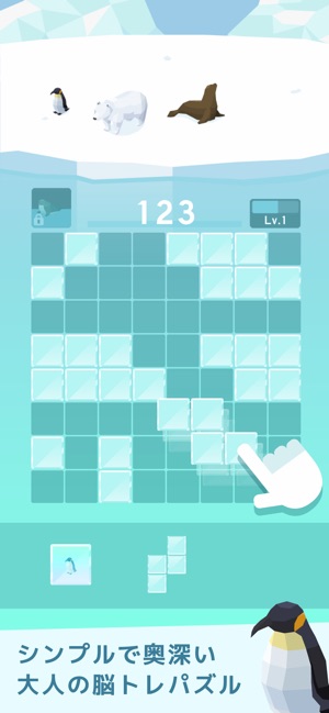 ・8×8マスの中に氷ブロックを埋めていく