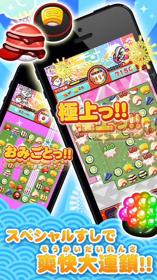 同じ種類のすしたまを3個そろえて消すだけ!