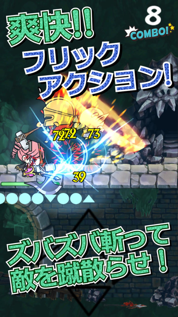 爽快フリックアクション登場!操作はタップ・上下左右のフリックの5種類のみ。
