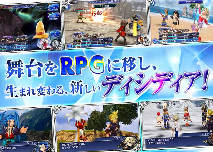 ブレイブ攻撃とHP攻撃を使い分ける、シンプルながら奥深い戦略を生み出すコマンドバトル。キャラクターごとの多彩なアビリティ、連携攻撃が生み出す爽快なバトルを体験しましょう!・パーティーをカスタマイズして強敵に挑め!