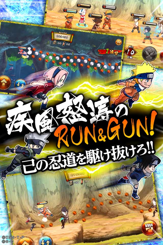 「NARUTO-ナルト-」の人気キャラクターが多数登場し、原作の世界観を表現したマップ上をデフォルメされたキャラクターが駆け抜けるランナーゲームです。ジャンプで敵キャラをかわしたり、アイテムを獲得しながらゴールを目指します。ボスキャラが登場すると、プレイヤーが攻撃や忍術を戦術的に繰り出すボスバトルモードに切り替わり、豪華な演出をお楽しみいただけます!